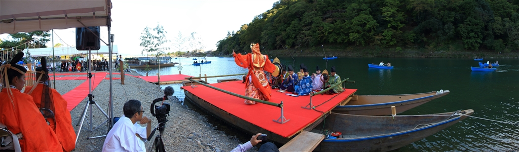 嵐山通船北乗船場での雅楽奉納(パノラマ)