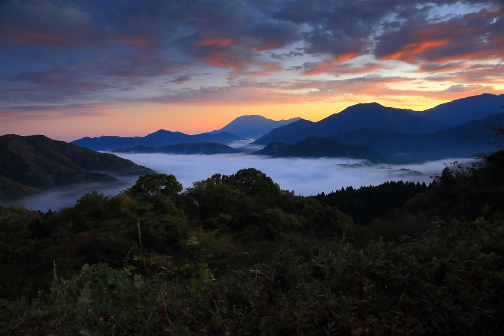 日出の約30分前(明智峠の朝焼けは始まっていた)