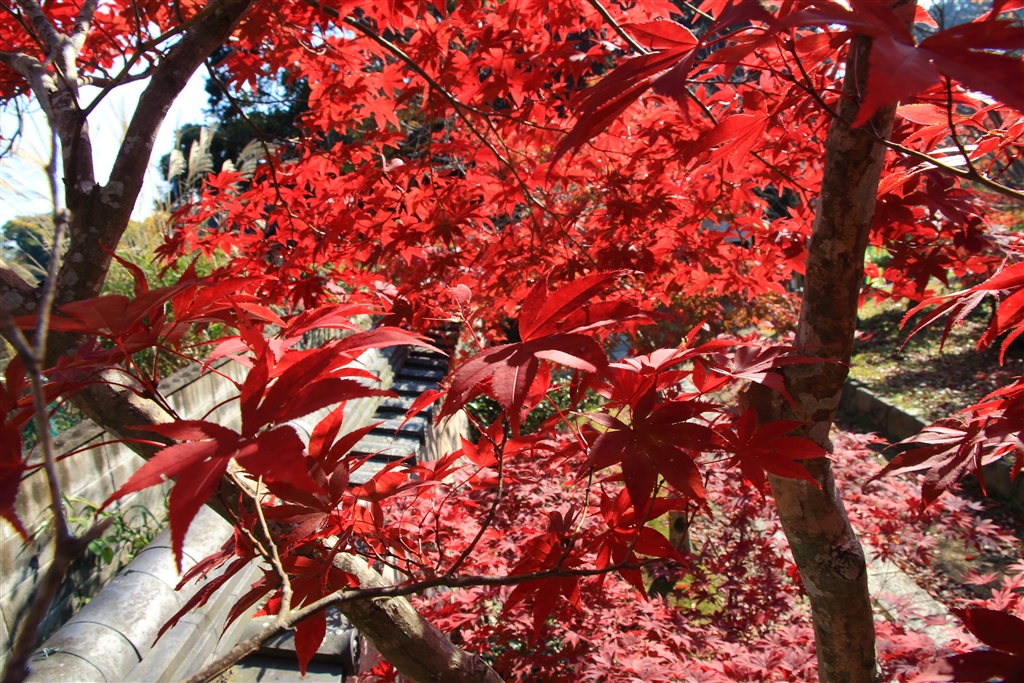 勝持寺参道の紅葉(脚&エレベータを伸ばした三脚で持上げノーファインダー撮影)