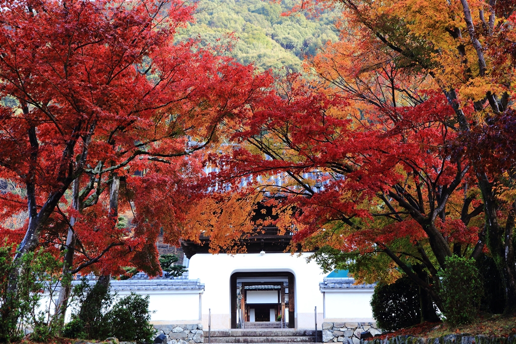 山門の前までモミジのトンネルが…