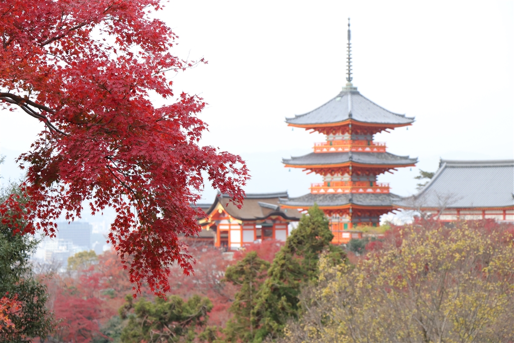紅葉が素晴らしくて、三重塔は脇役で
