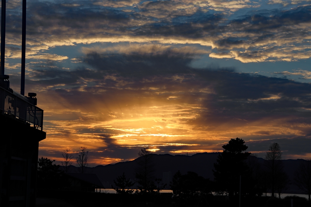 湖畔の夕日