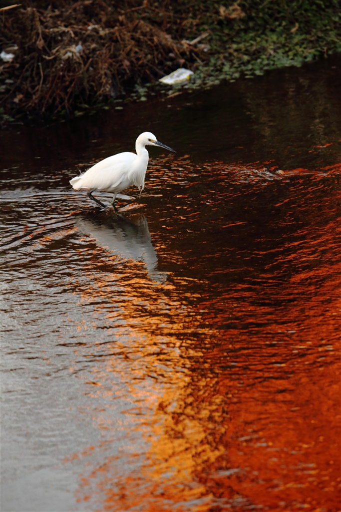 朝陽を浴びた建物に反射した光の川面です。
