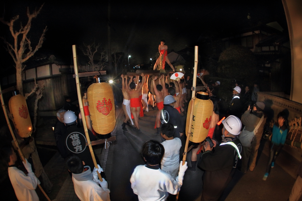 太鼓を担いで町内を練り歩く