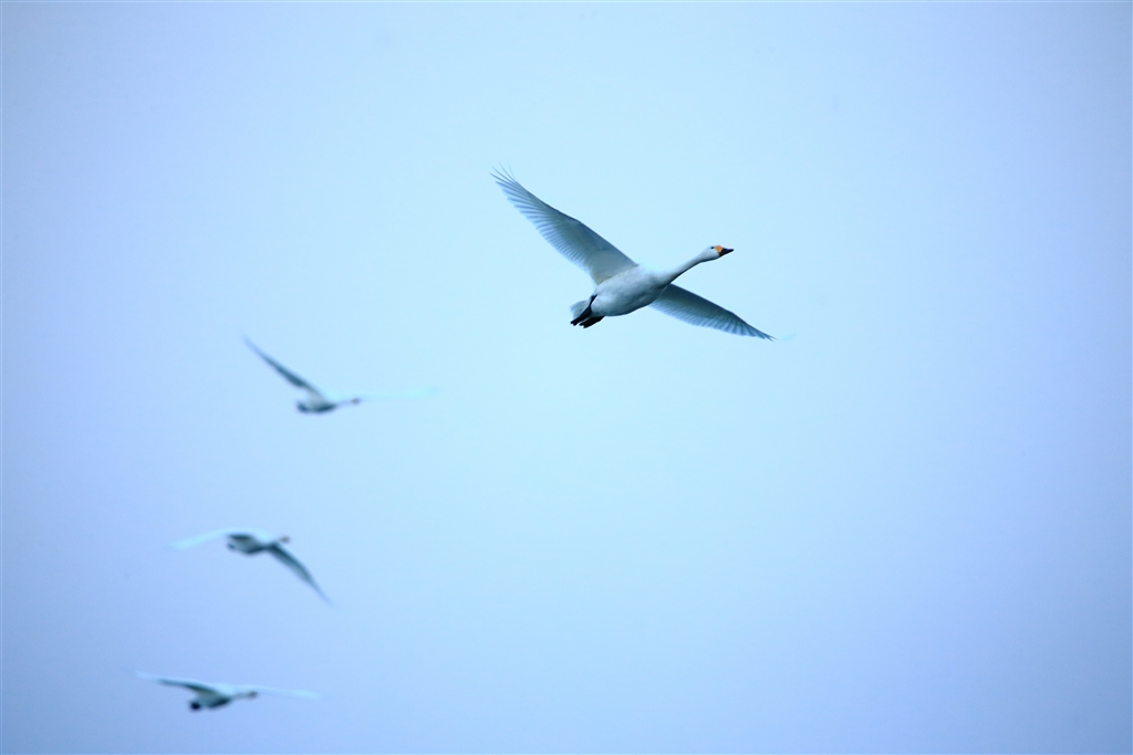 コハクチョウが飛ぶのは朝夕だけ