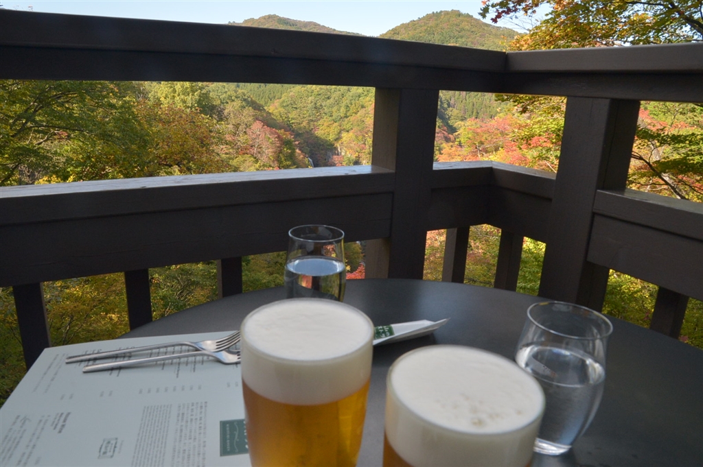 滝を見ながら乾杯!