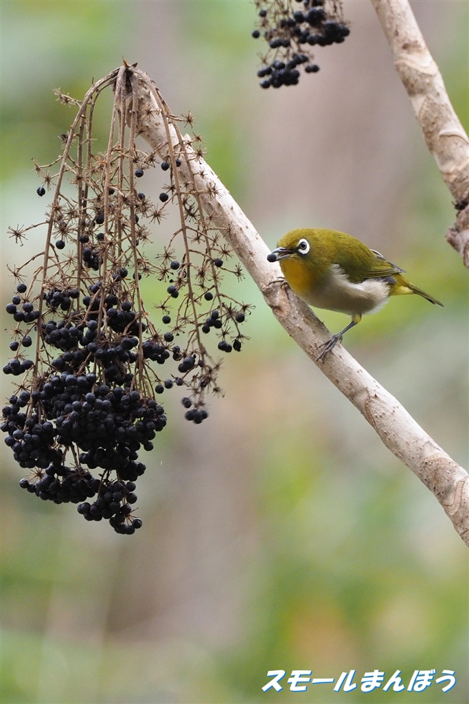 タラの実を食べに来たメジロ