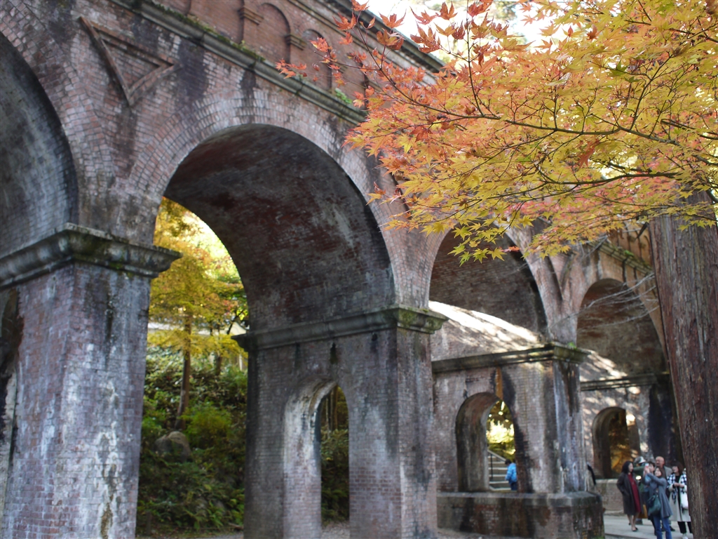 水路閣と紅葉。