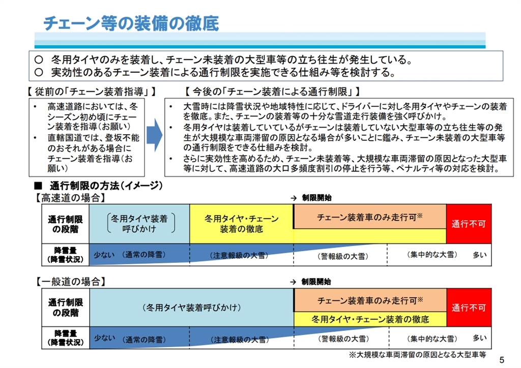 『大雪時の道路交通確保対策中間とりまとめ参考資料(PDF形式)より』 タイヤチェーンすべて あさとちんさんのクチコミ掲示板画像1/1