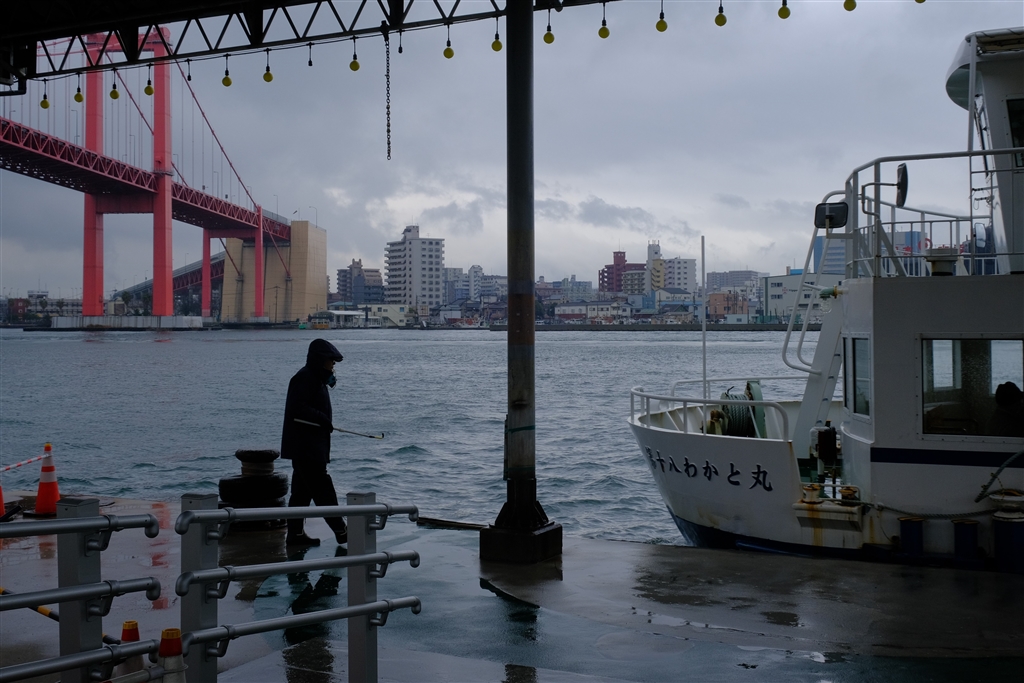 若戸大橋と若戸渡し舟