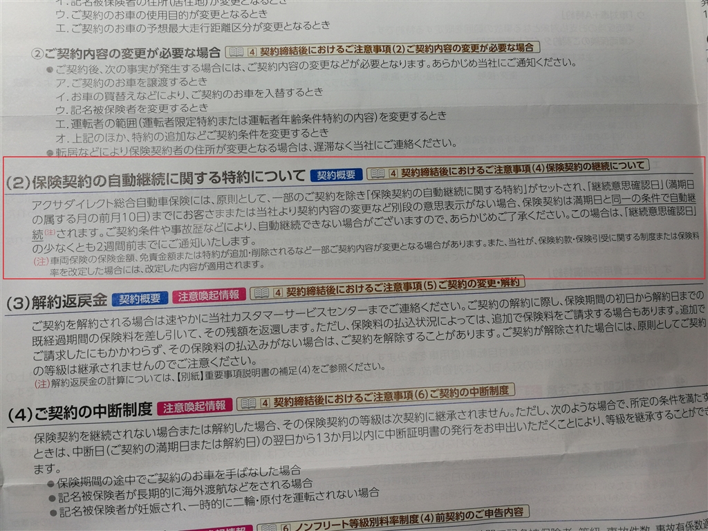 アクサダイレクトの重要事項説明(抜粋)