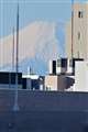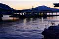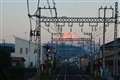 どこでしょう、の夕暮れ富士へ伸びる線路。。。