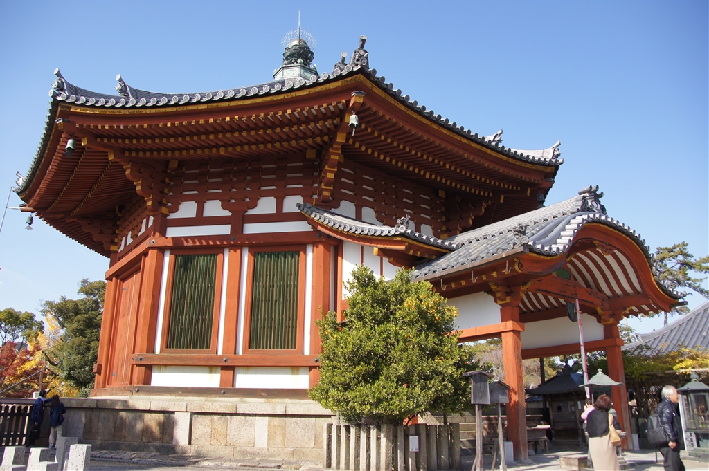 朱色が美しい八角形のお堂です。