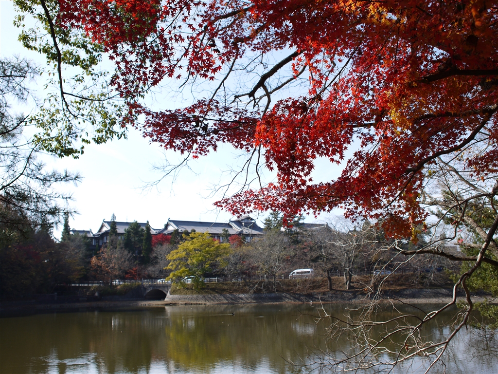 荒池と紅葉…背景は奈良ホテルかな。