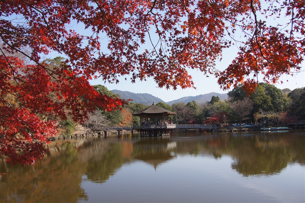 浮御堂と紅葉。