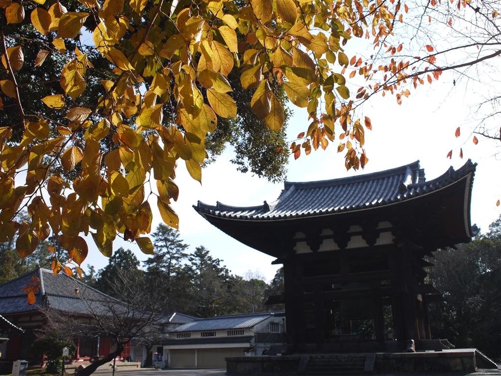 柿の黄葉と鐘楼。