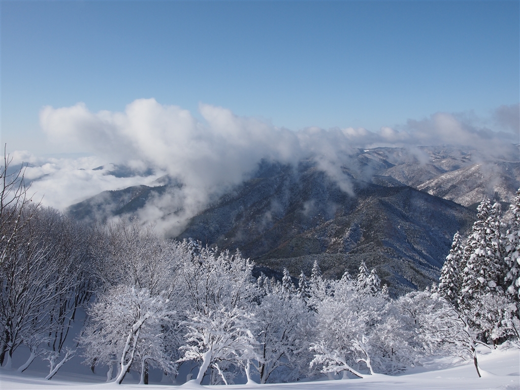 京都北山の山々を望む。