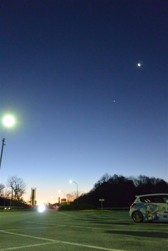 東の空が白んできました、嵐山パーキングエリア