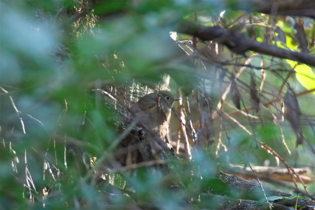 ルリビタキ♀は 小枝の絡む奥からじっと動かず 根負けしました