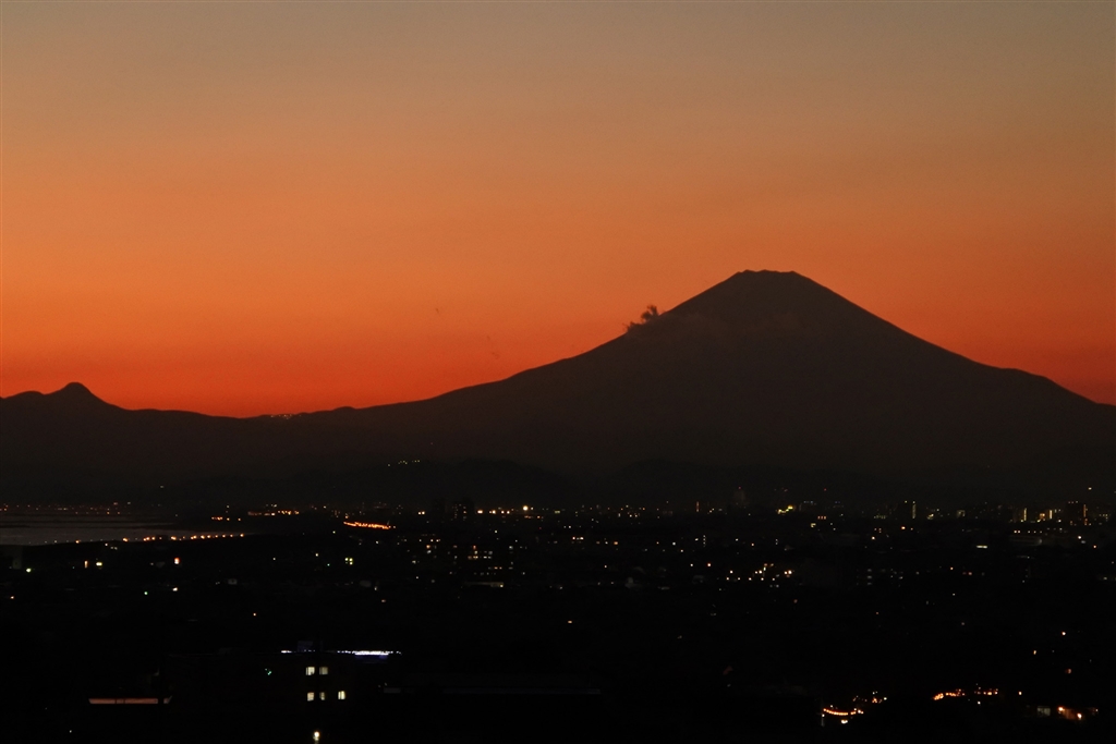 夕焼けの金時山と富士山