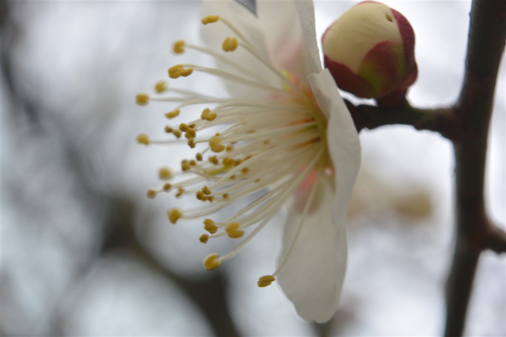 寺院の梅、メジロは留守、中間リング入り