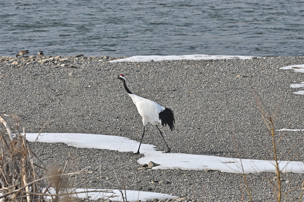 河岸にはタンチョウツル