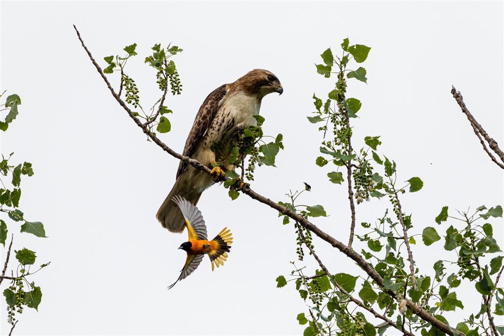 ノスリン周囲をうろつくオリオール