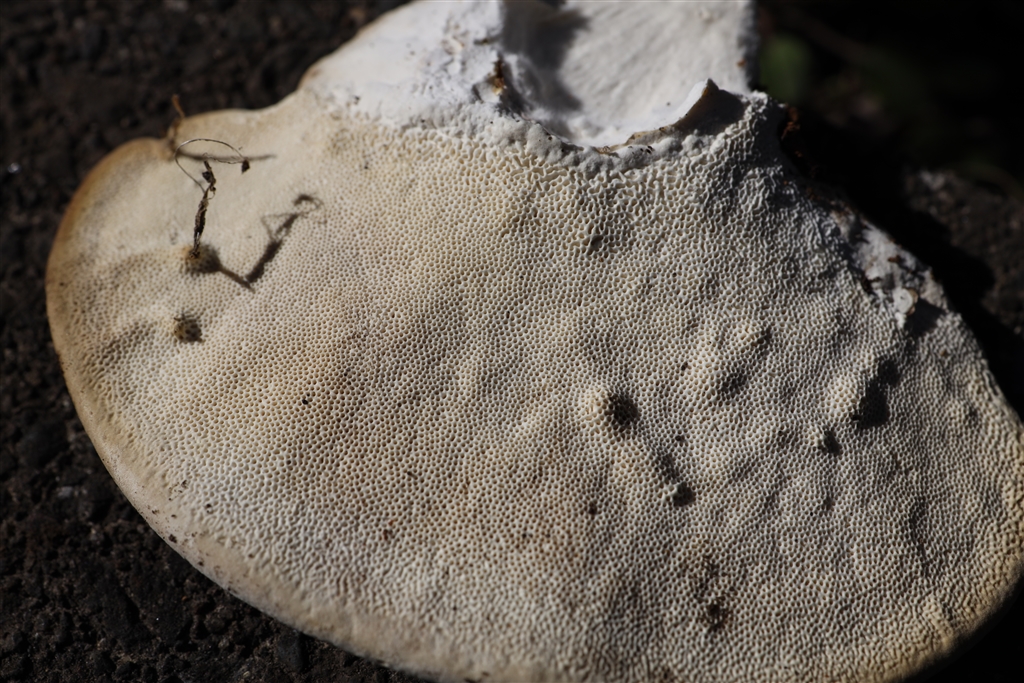 穴の正体はサルノコシカケの裏(EOS R+RF35mm 最短距離で0.5倍)