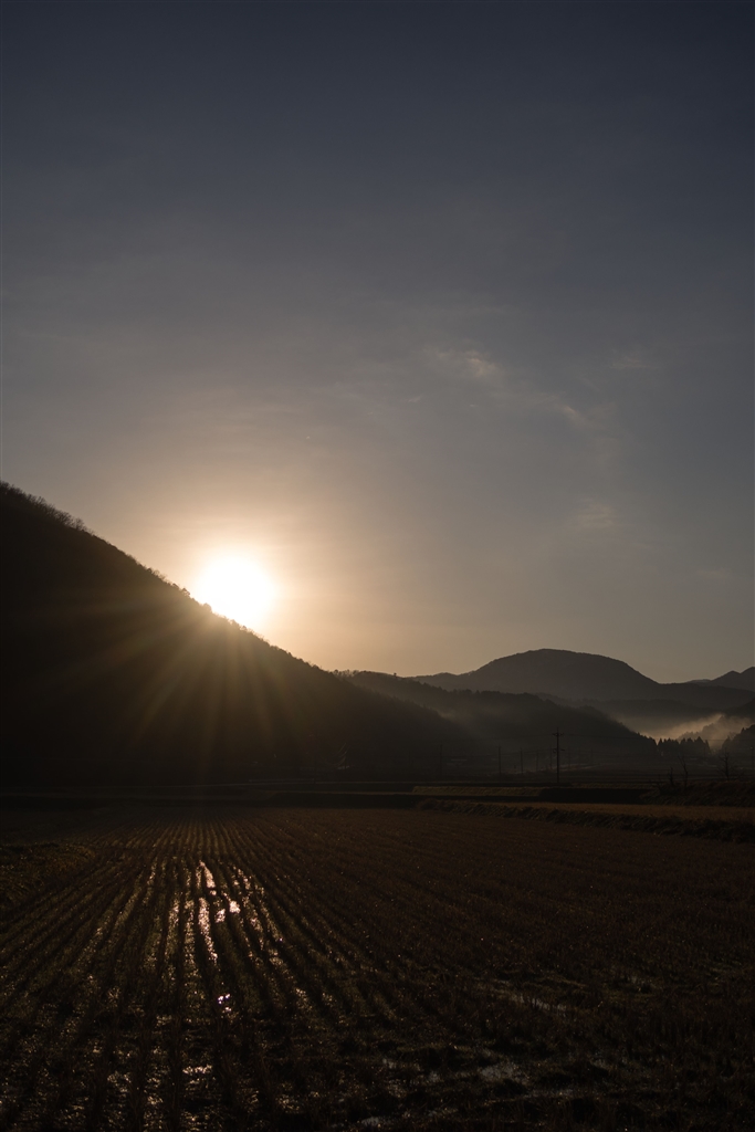 水田地帯の朝、縦撮り
