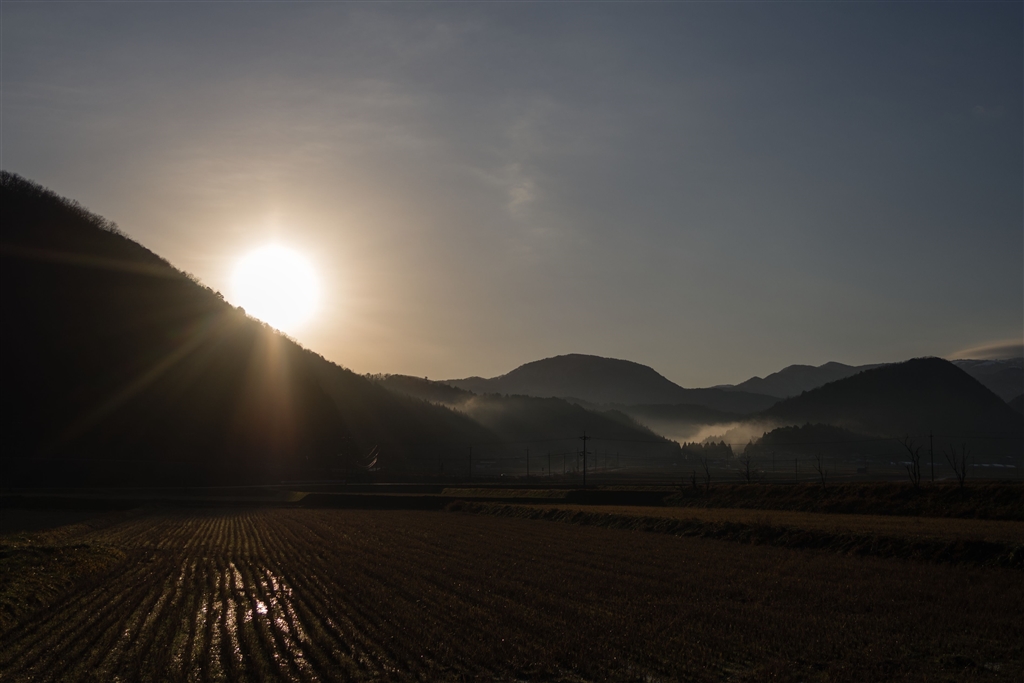 水田地帯の朝、少しトリミング。