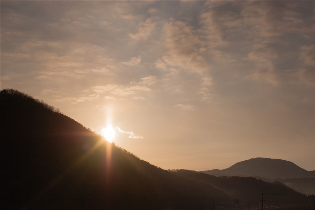 山の稜線からの朝日。