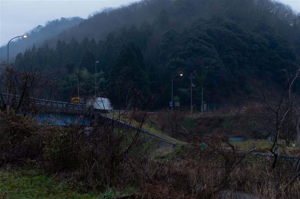 機の藪越しの国道九号東向き