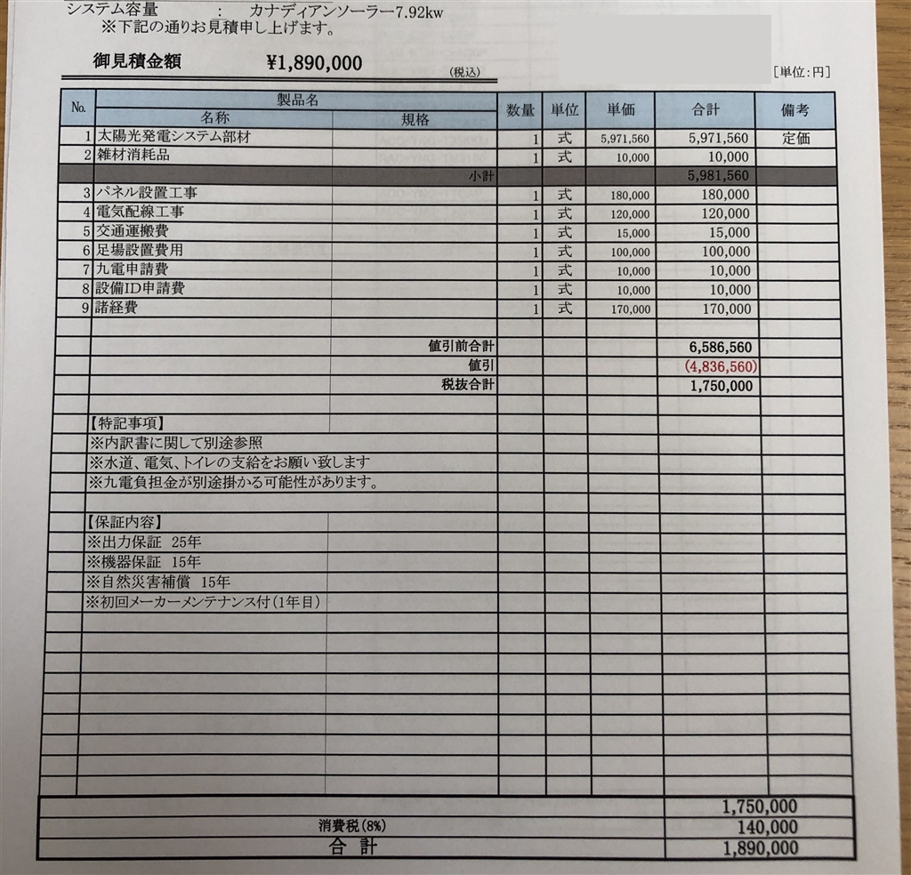 カナディアンソーラー見積もり