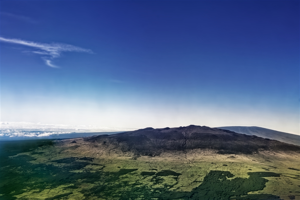 マウナケア山。飛行機の中からパシャリと撮りました