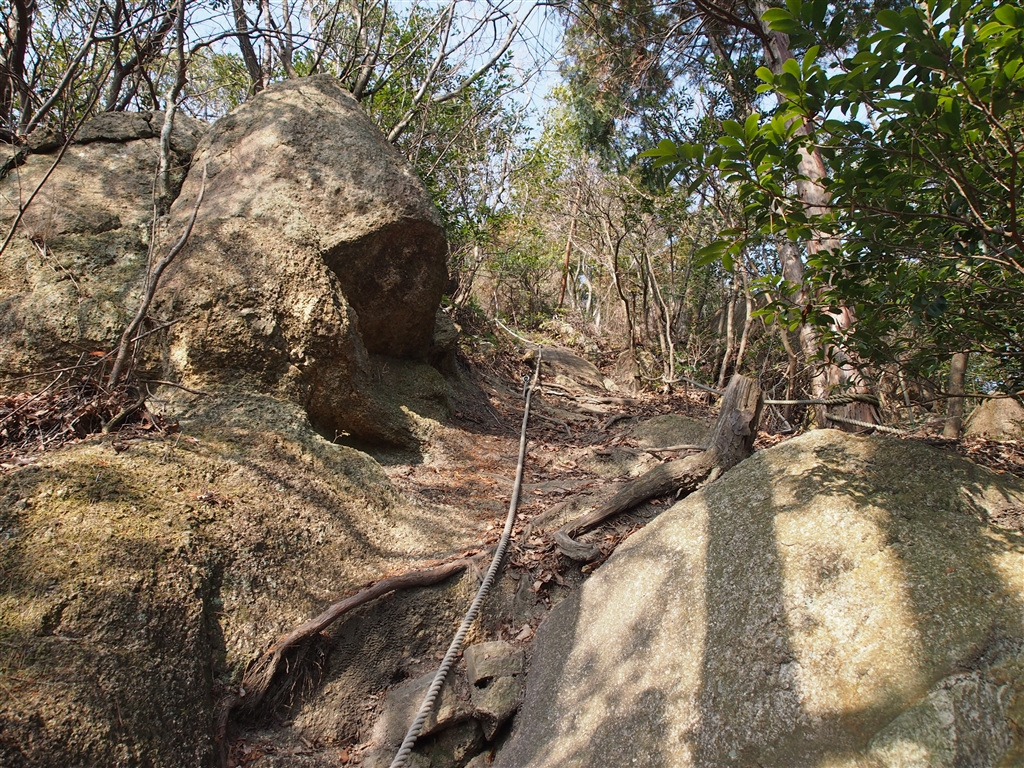 軽い岩場…固定ロープも在って至れり尽くせりです。