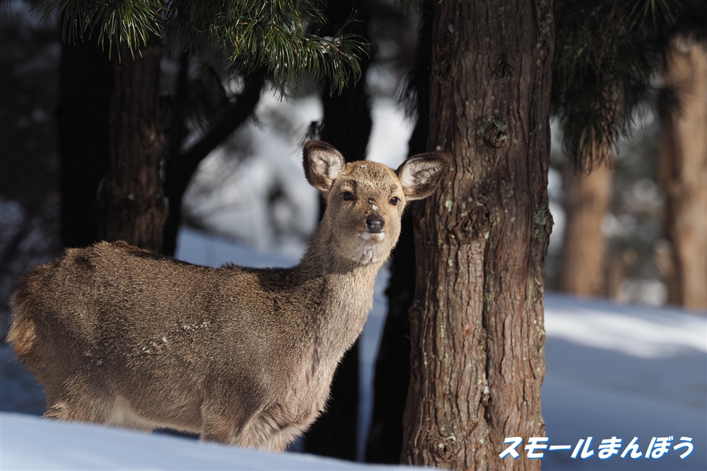 前方にシカ発見!(また人里に降りてきたかぁ)