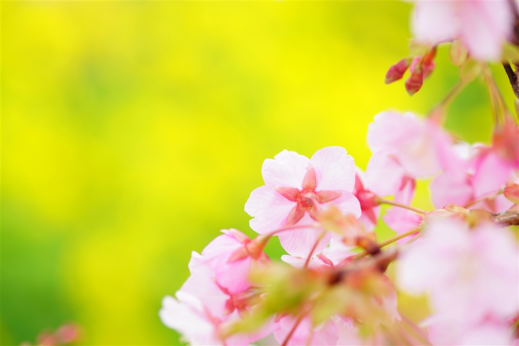 菜の花がピンクを引き立てます