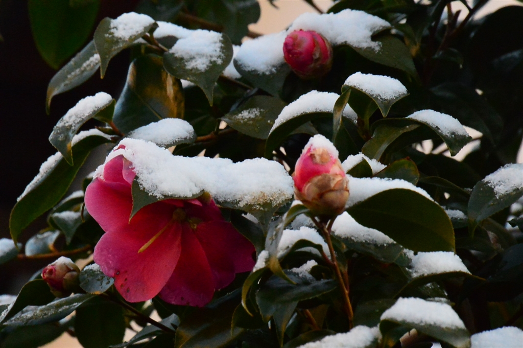 椿に雪