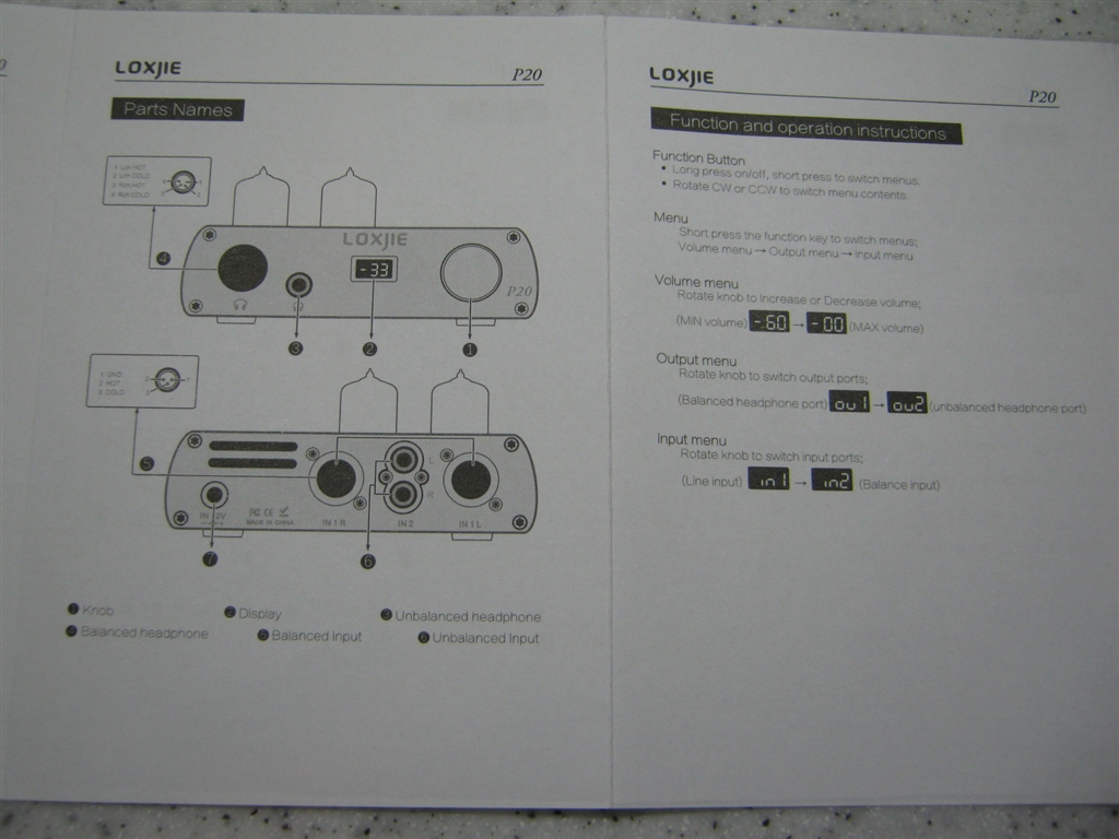 付属の取扱説明書(英文)です