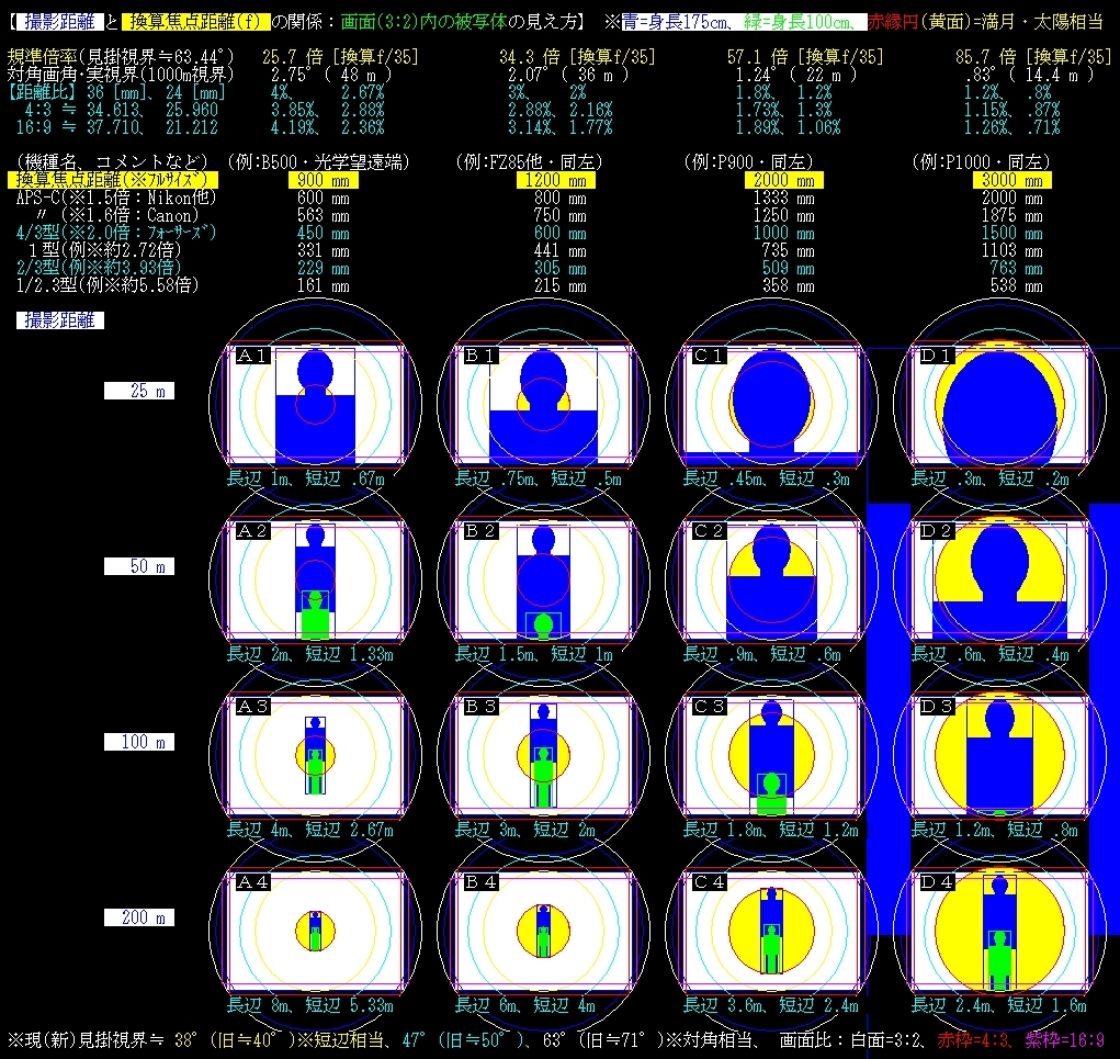 距離25~200m、B500、FZ85他、P900、P1000
