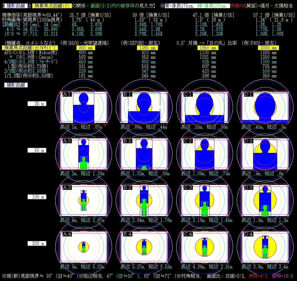 距離25~200m、B500、FZ85他、P900、P1000