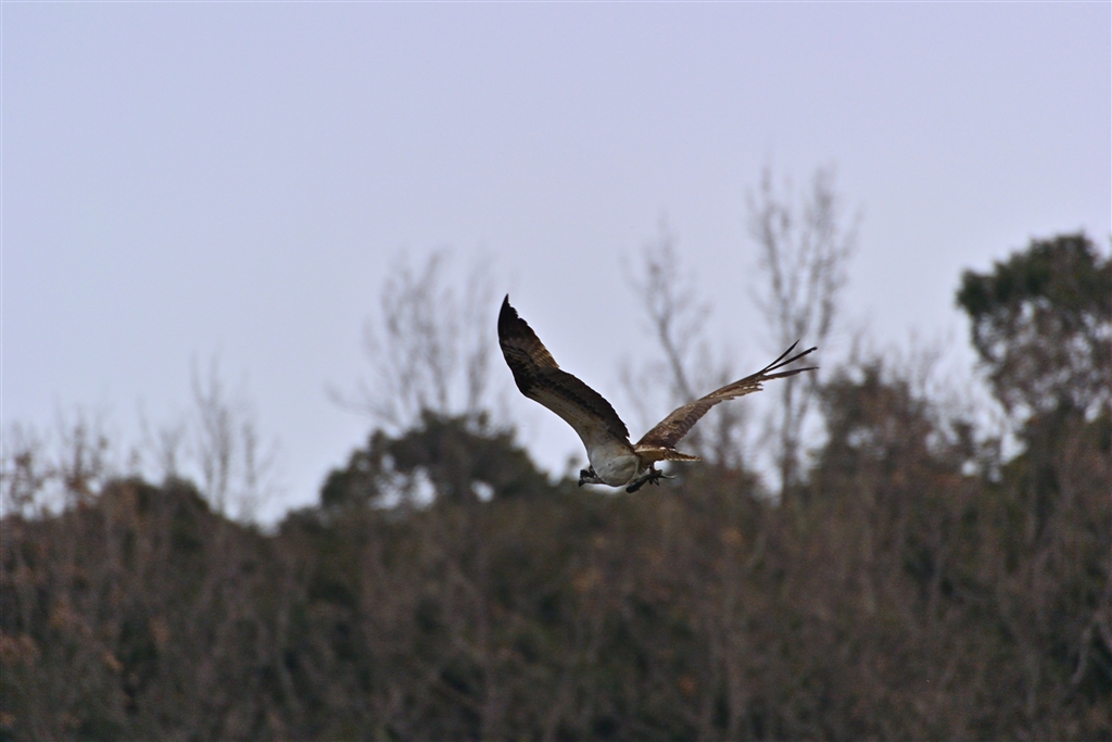 離れた山手を小さな獲物を持ったミサゴが飛び去っていました