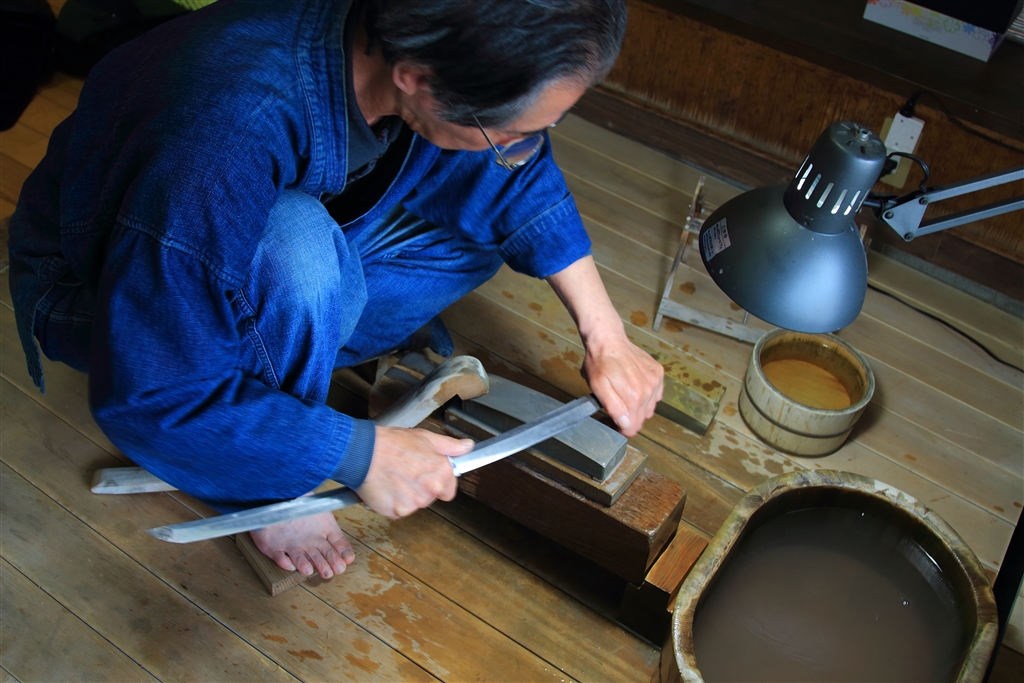 この道50年の研ぎ師が刀身を研ぐ