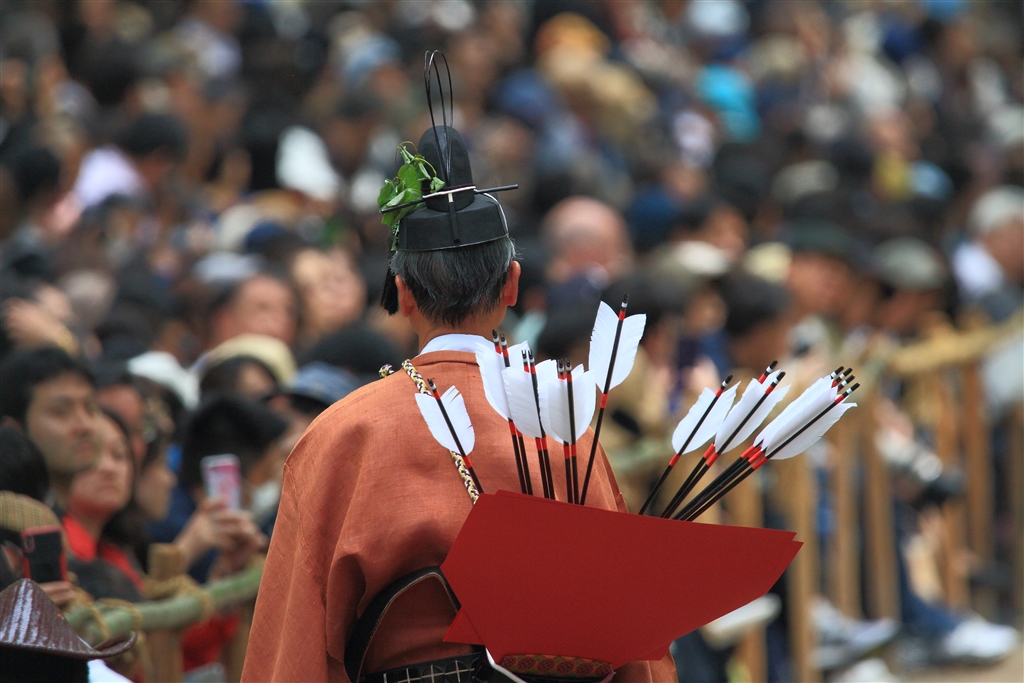 この人の役は(的に当たったかどうかの)判定と次の騎射開始の準備完了の判断をする