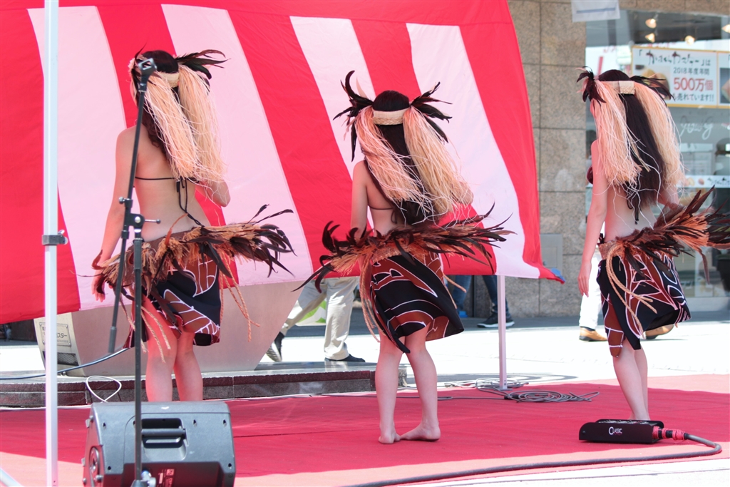 素足では暑いらしく急遽テントの下で演技を