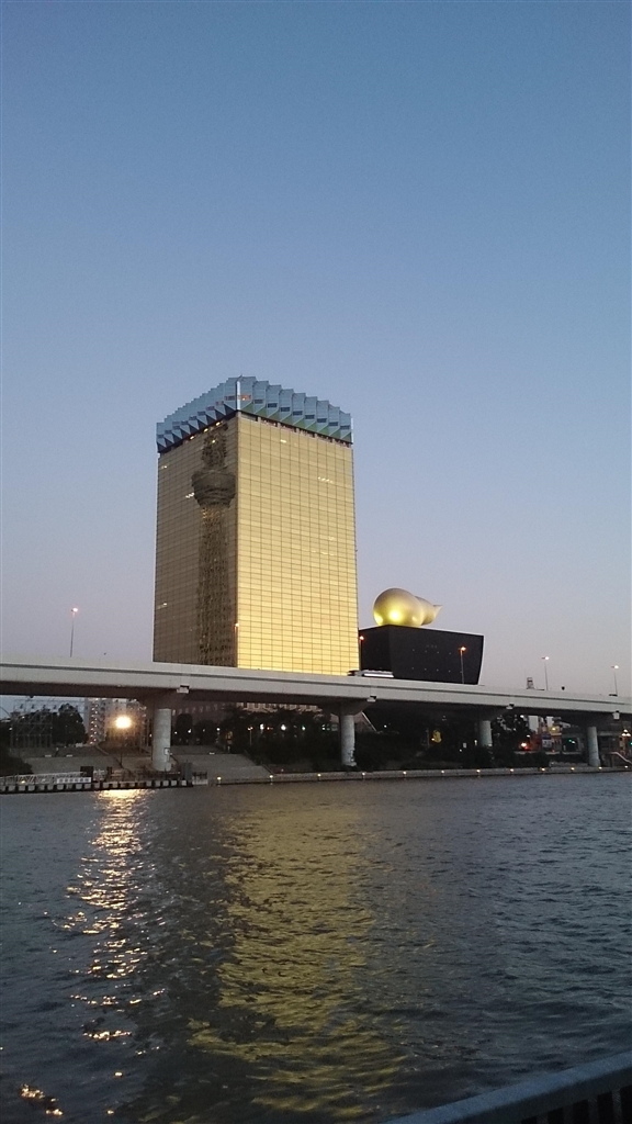ビルに映し出されたスカイツリーの横で光るうん〇