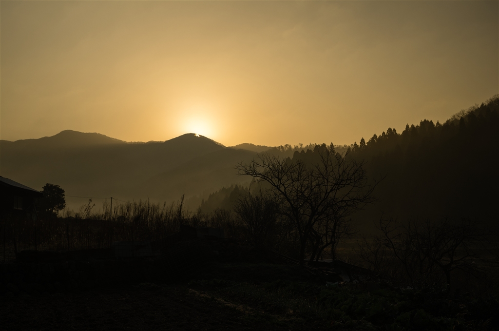 山の稜線からの朝日の出(可変ND使用)