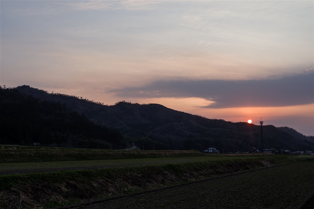 山の稜線に太陽が