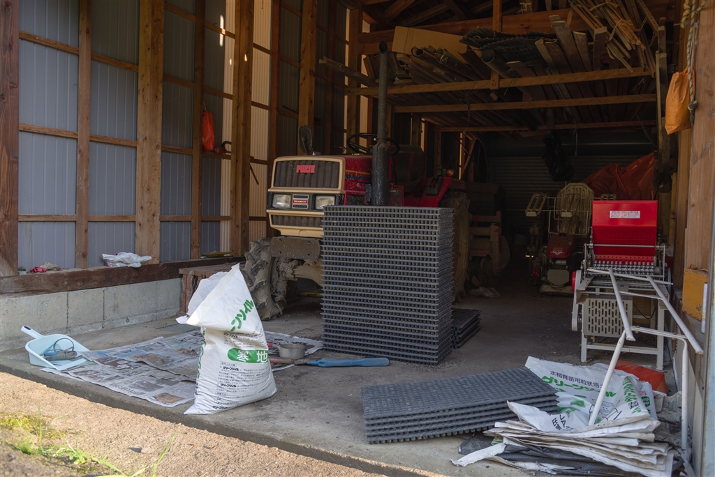 稲の苗箱38個土入れ