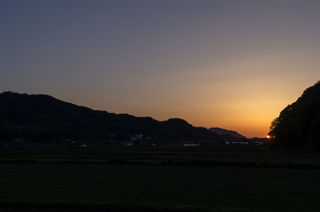 山の稜線へ日没。